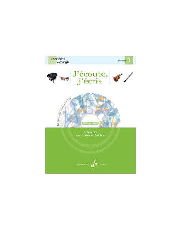 J'écoute, j'écris est un ouvrage avec CD destiné aux élèves de classes de formation musicale mais aussi aux personnes souhaitant travailler de façon autonome leur oreille musicale : formation de l'oreille sous ses différents aspects (timbre, hauteur, durée, intensité, structure…) tout en passant par le développement de la mémoire et l'esprit d'analyse. Cet outil a pour objectif l'appropriation d'œuvres du répertoire par le biais d'un travail auditif varié.