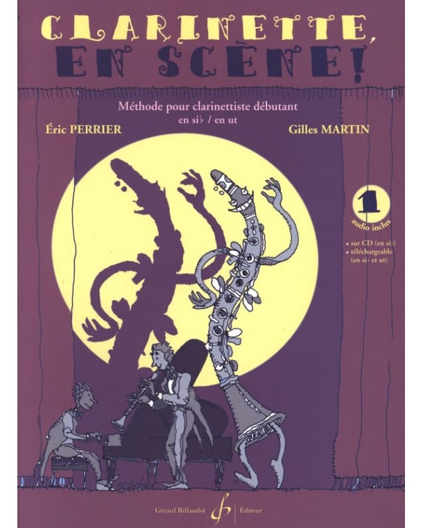 Clarinette, en scène ! volume 1 est un recueil pour débuter la clarinette, en si b ou en ut, organisé en 20 leçons, innovant dans sa présentation, méthodique dans sa progression et ludique musicalement.